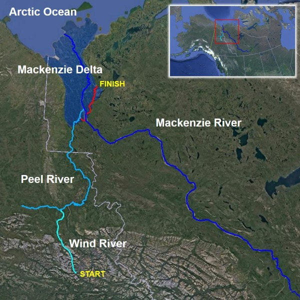 The Horobins began their expedition in McClusky Lakes, Yukon, canoeing down the Wind River to the Peel River, where they eventually took the Mackenzie River to Inuvik.